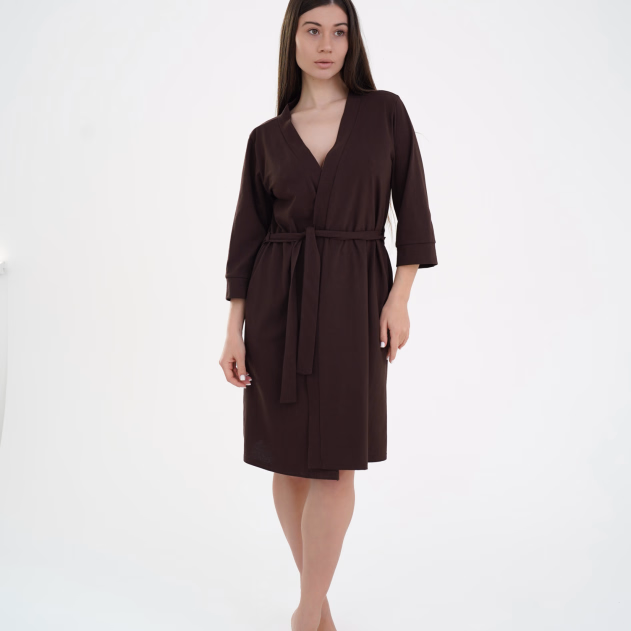 Шоколадний колір виглядає стримано й елегантно, легко поєднується з нічними сорочками та піжамами. Халат підходить для дому, пологового будинку та періоду відновлення.